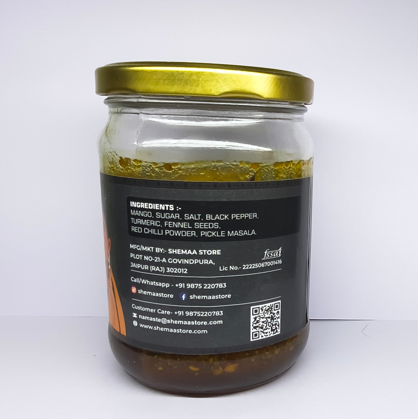 Delicious homemade Sweet Mango Pickle with a perfect blend of sweetness and tanginess.